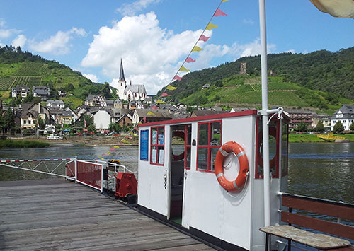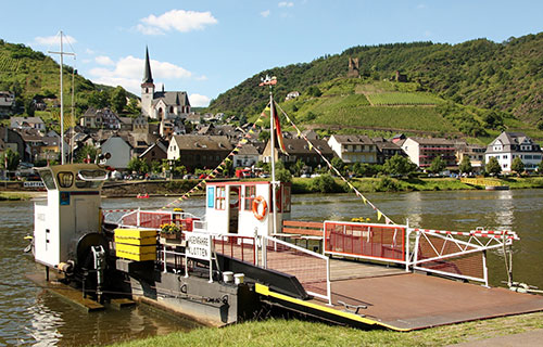 Diese Fähre ist bis heute noch im Dienst und befördert Jahr für Jahr viele Radfahrer und Wanderer über die Mosel.